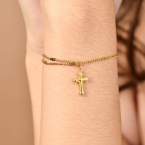 Panlandwoo – Gelang Tangan Titanium Wanita Golden Cross Adjustable