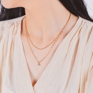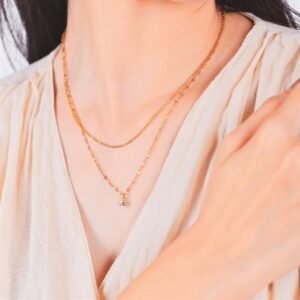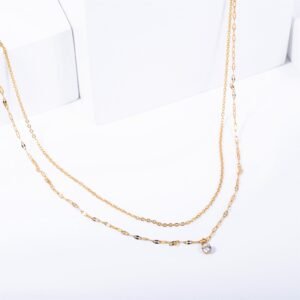 Panlandwoo – Kalung Stainless Wanita Double Diamond Adjustable