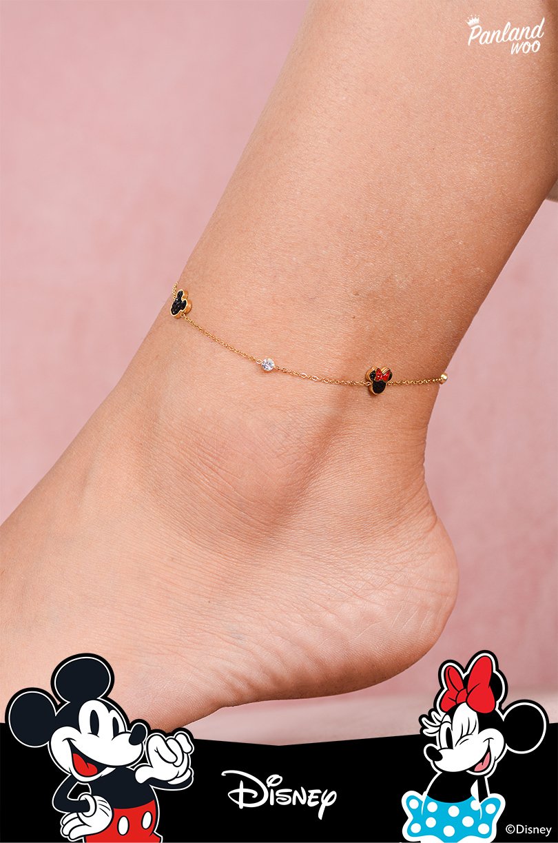 Gelang dengan design cantik dan lucu ini memiliki liontin berbentuk Mickey dan Minnie Mouse dihiasi dengan diamond yang mewah. Gelang ini sangat cocok dipadukan dengan berbagai outfit Anda saat santai maupun acara resmi.