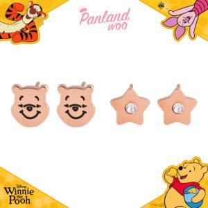 Anting Set Aero memiliki desain yang simple dan minimalis. Dilengkapi pendant kepala Pooh dan bintang dengan permata di tengahnya cocok untuk dipakai sehari-hari.