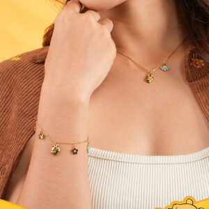Gelang Tangan Theron memiliki charm yang playful dan menggemaskan, mulai dari kepala winnie the pooh, lebah, bintang, dan balon. Gelang ini memberikan kesan ceria bagi yang memakainya. Rantai gelang bersifat adjustable sehingga bisa disesuaikan langsung di tangan.