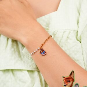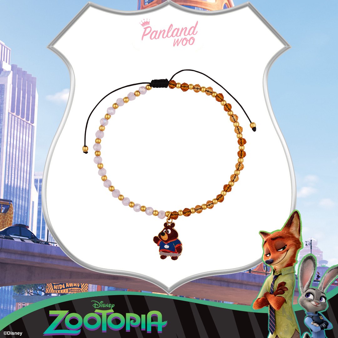 Gelang Deangelo memadukan manik-manik kombinasi warna amber, coklat, emas, dan baby pink yang menciptakan kesan hangat dan cute. Tidak lupa juga dengan charm karakter beruang kecil Zootopia dalam kostum lucu berwarna merah–biru yang lucu dan menggemaskan. Gelang ini bisa di-adjust sendiri di lingkar tangan kamu.